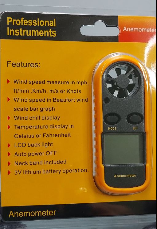 Anemometer Instrument na pwede mo gamitin sa field kung mayroon ka activity sumusukat ito ng hina at lakas ng hangin. Ang karamihan sa gumagamit nito ay mga remote control plane pilot, drone pilot, wind surfing, sailing, palipad ng sarangola at mga bagay na may kinalaman sa pag papalipad.