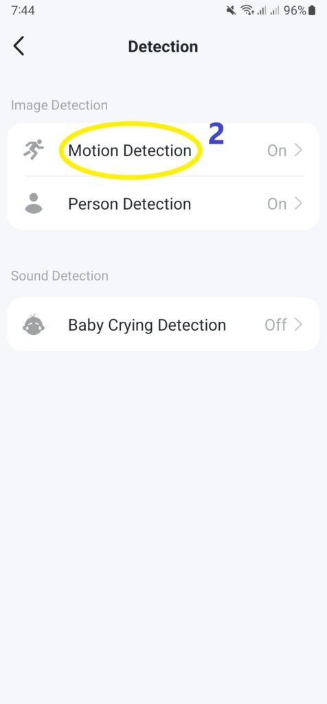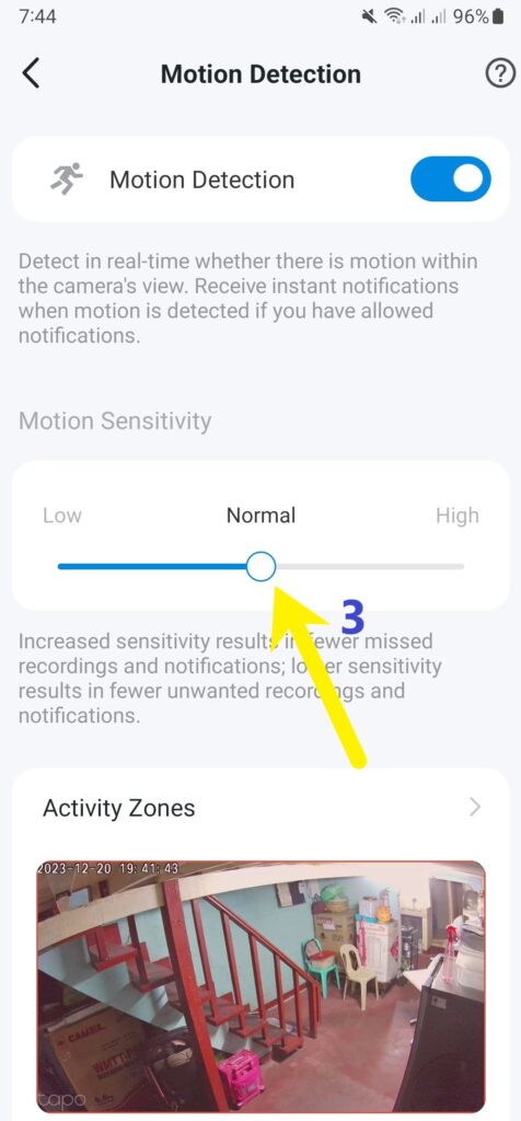 3. Drag Slider to select Low, Normal, High for Motion Sensitivity