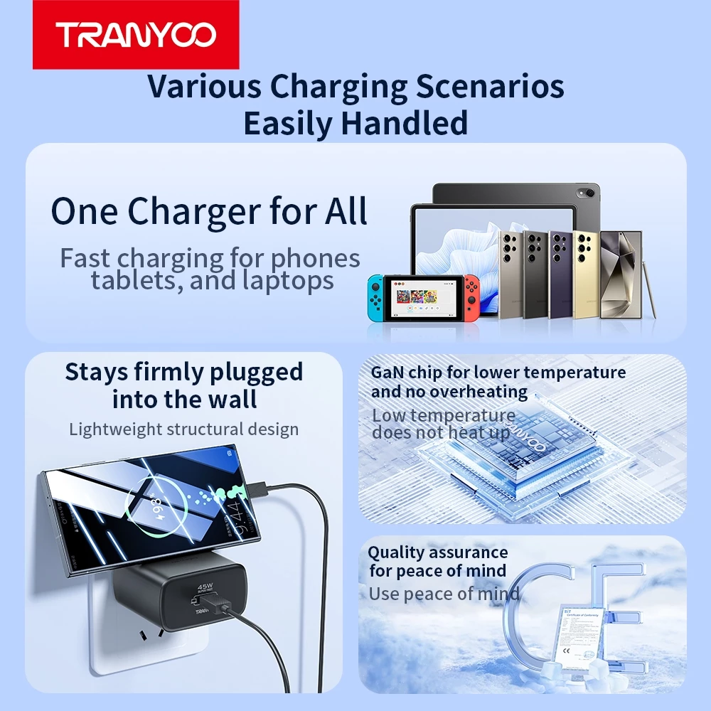 Pagod ka na ba sa kakahintay na mapuno ang phone mo? Sa bilis ng buhay ngayon, hindi na uubra ang charger na pagong kung mag-karga. Dito papasok ang Tranyoo SA6C 45W Fast Charger—ang compact charger na may bilis.